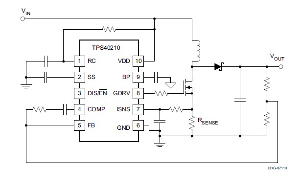 TPS40210EVM features: (1)For Boost, Flyback, SEPIC, LED Drive Apps; (2)Wide Input Operating Voltage: 4.5 V to 52 V; (3)Adjustable Oscillator Frequency; (4)Fixed Frequency Current Mode Control; (5)Internal Slope Compensation; (6)Integrated Low-Side Driver; (7)Programmable Closed Loop Soft Start; (8)Overcurrent Protection; (9)External Synchronization Capable; (10)Reference 700-mV; (11)Low Current Disable Function.